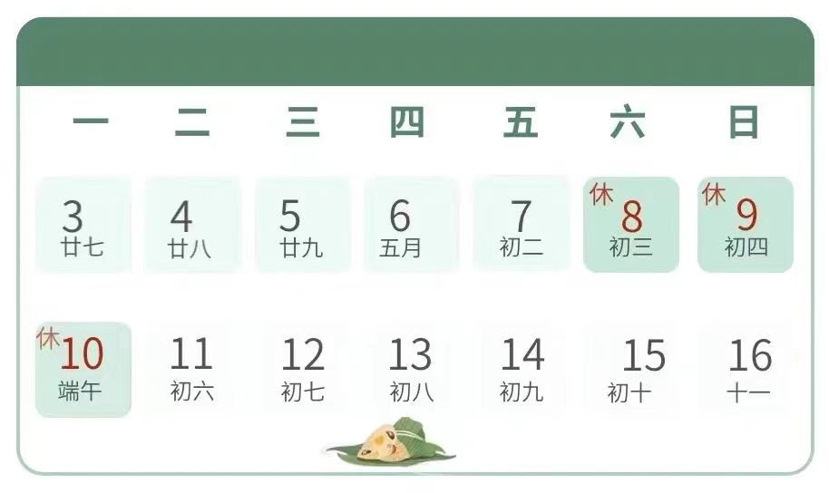 2024端午節即將來臨,廣州銘視全體員工向各位客戶朋友致以節日的問候,為了度過歡樂、祥和、平安的節日,根據國務院辦公廳法定假期的規定,結合本公司的實際情況,現對端午節放假做出安排: